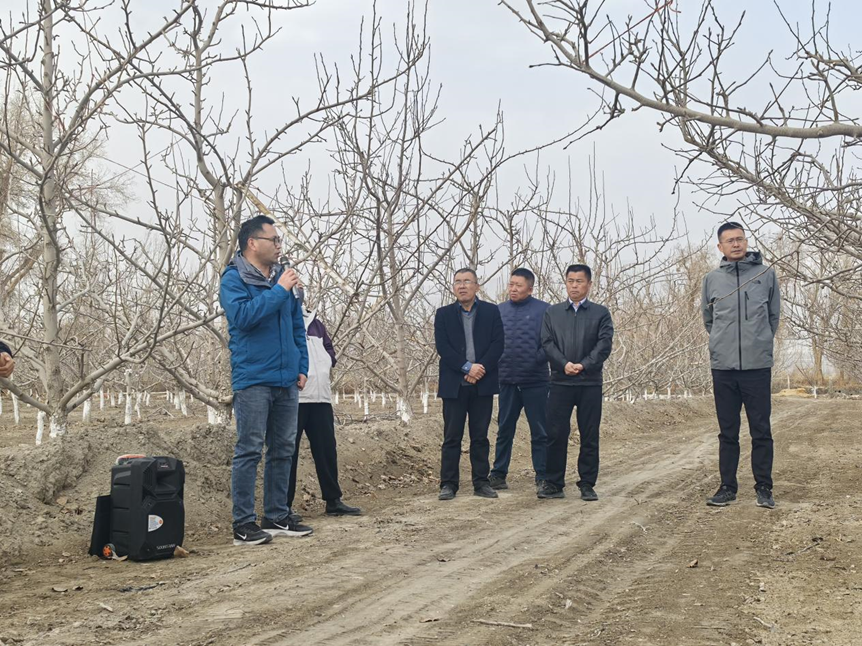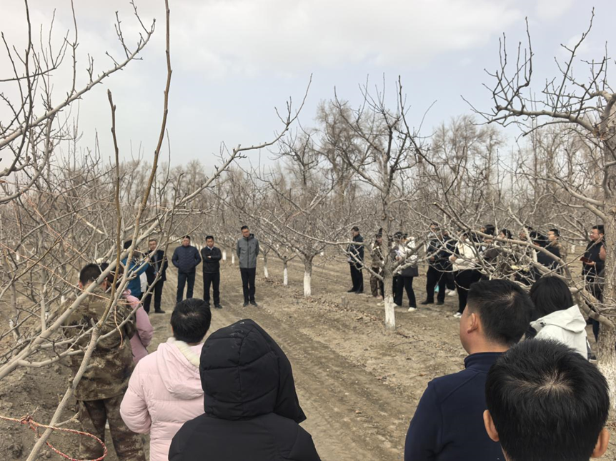 春回大地,农事渐忙。近日,为助推新疆建设兵团第二师铁门关市果园春季管理水平,植保所细菌病害创新团队带头人赵延存研究员和巩培杰副研究员应邀参加了“库塔垦区春季果园管理技术培训现场会”。本次培训会由第二师铁门关市农业农村局主办。第二师铁门关市农业农村局局长邓志峰、农业农村局农业发展服务中心主任窦宏举、农业发展服务中心副主任宋文、新疆农垦科学院分析测试中心主任罗瑞峰研究员、新疆农垦科学院林园研究所王晶晶研究员、29 团、30 团、31 团、33 团、34 团农业发展服务中心负责人、农技人员以及示范园职工代表等共80余人参会。
